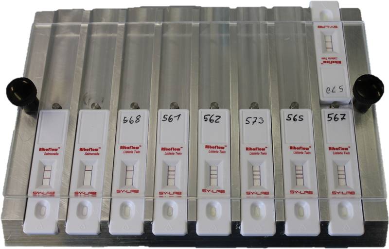 The RiboFlow® technology is an advance over current diagnostic capabilities, providing molecular results in an easy to use format and without cumbersome sample preparation steps. NO gels, NO expensive machines, NO inconclusive and difficult to interpret results. Fast, easier, and more affordable than conventional molecular tests—SY-LAB´s RiboFlow® Technology is the next generation in powerful diagnostic tools to help manufacturers and government regulators keep the global food supply safe.